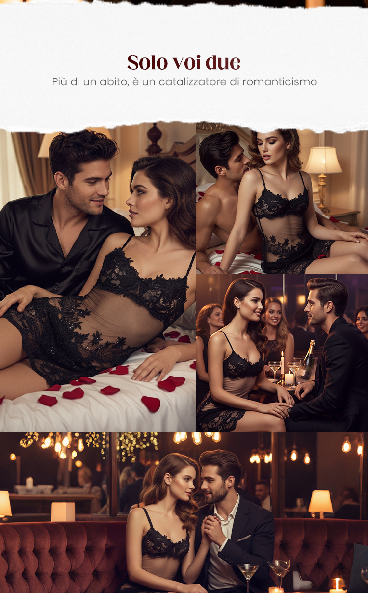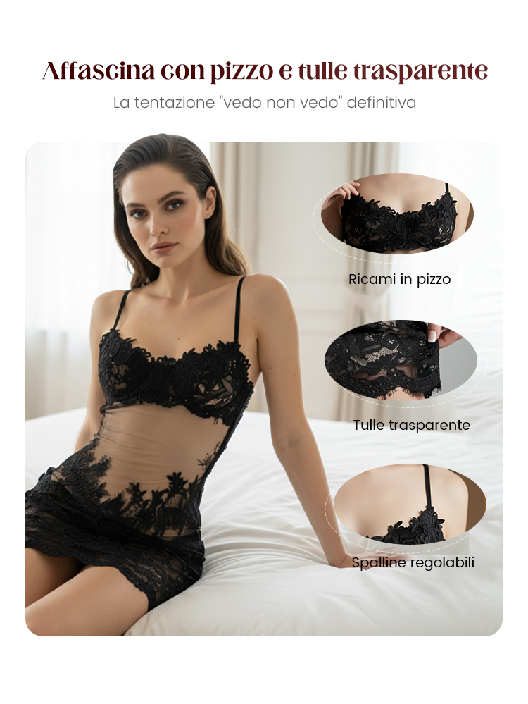 Vestito Sexy in Tulle Trasparente con Pizzo Ricamato